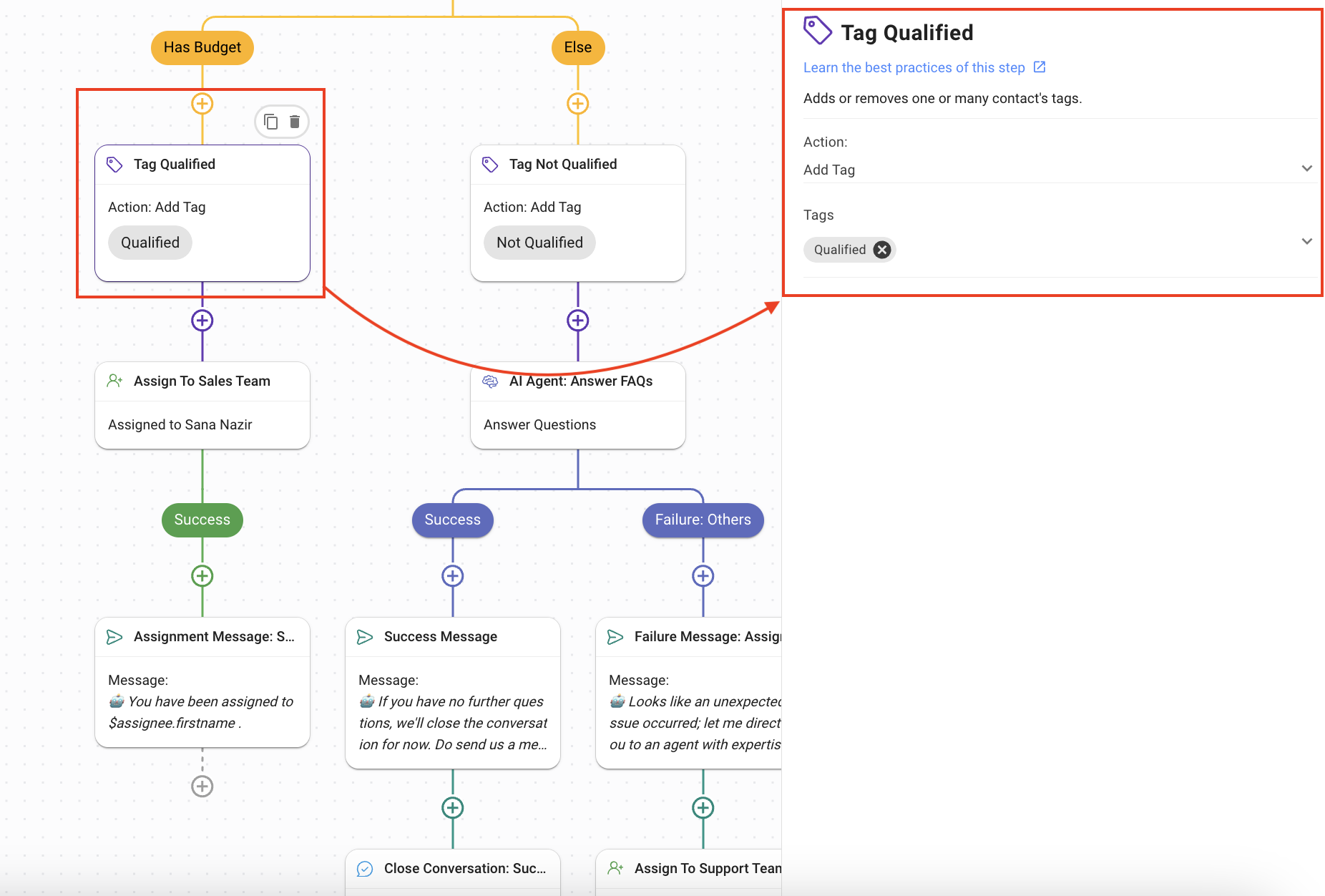 Tag Qualified: Using the Update Contact Tag Step, the Contact is tagged as “Qualified”.