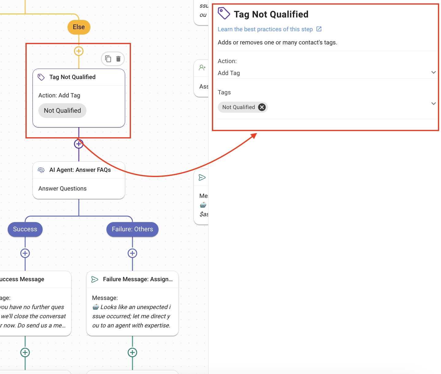 Tag Not Qualified: Using the Update Contact Tag Step, the Contact is tagged as “Not Qualified”.