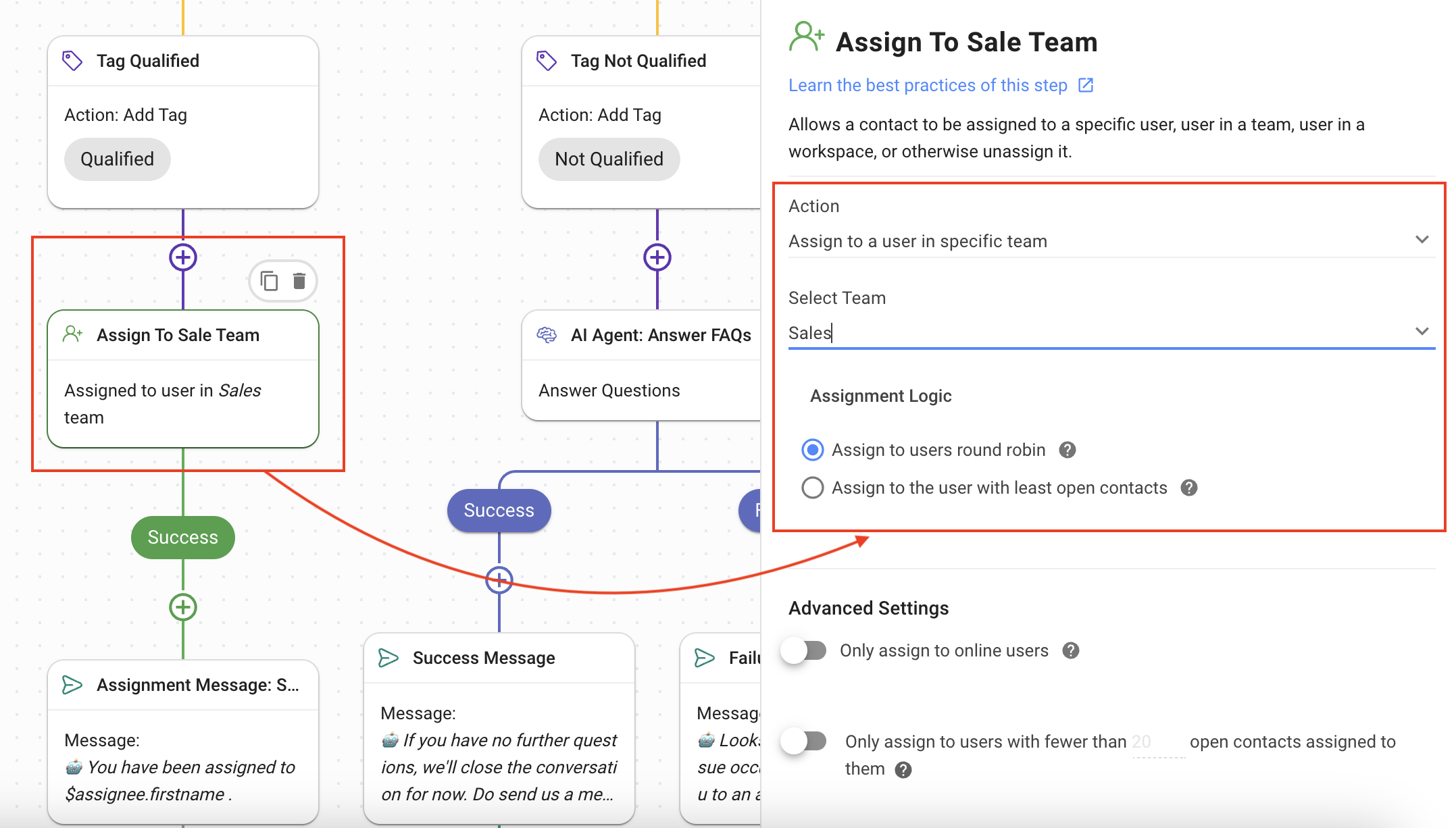 Assign to Sales Team: Using the Assign To Step, assign the Contact to the Sales team.