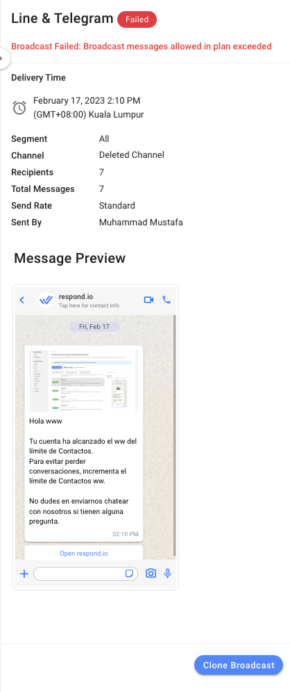 Sometimes, broadcasts are completed, but some Contacts fail to receive the messages. This could happen because the broadcast exceeded or violated the Channel limitations.