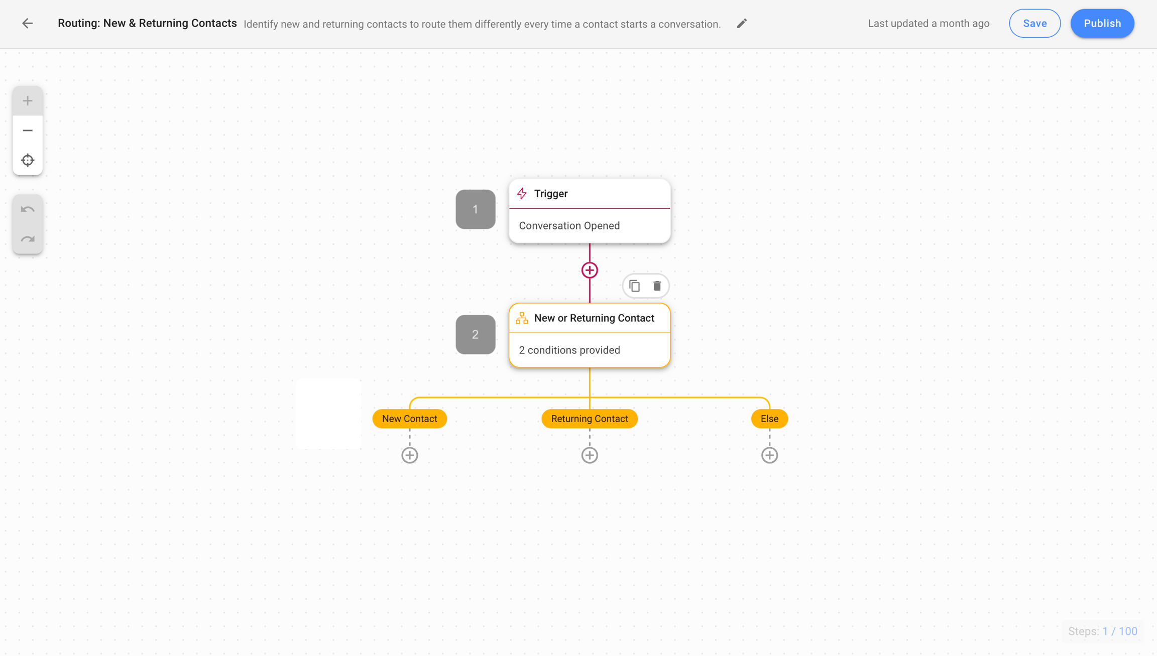 2. New or Returning Contact: This branch step checks if a Contact is new or returning and route them to different branches.