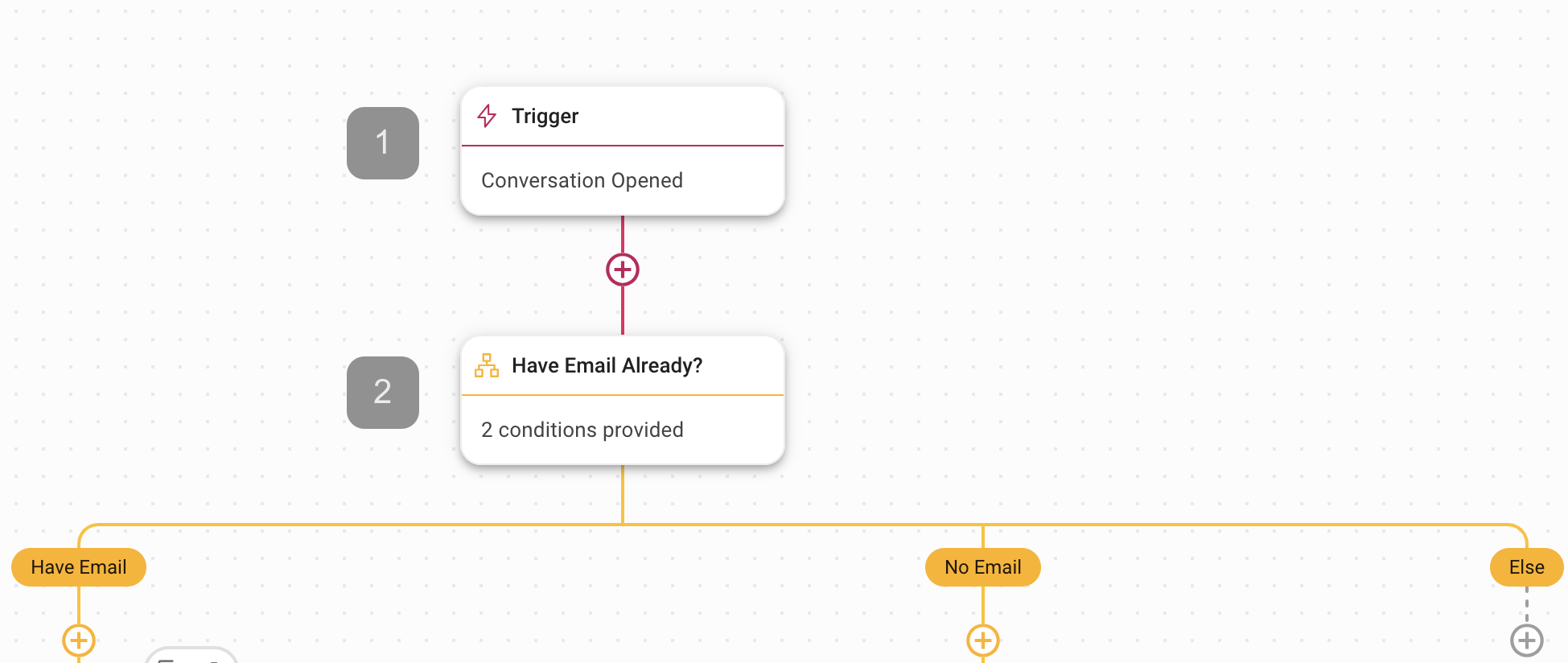 1. Trigger: The Workflow starts when a conversation is opened by a Contact.