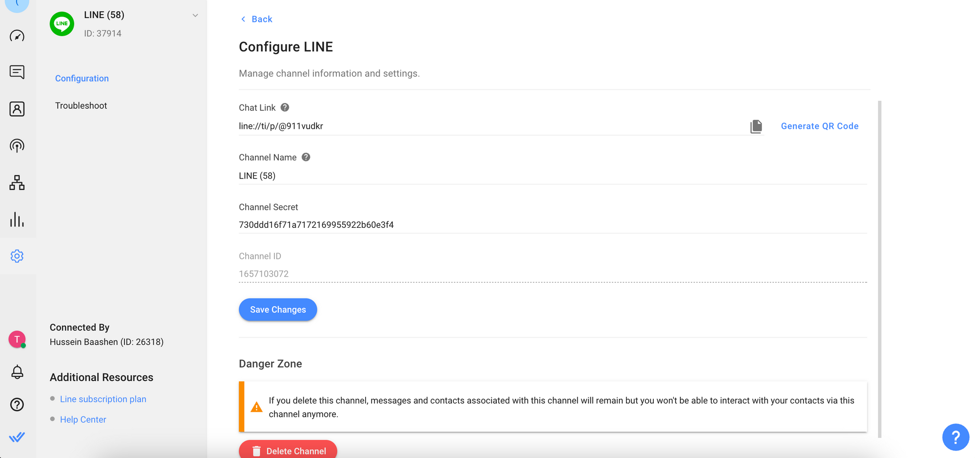 Once the Channel is connected, scan the QR code to send a test message and make sure everything is working properly.