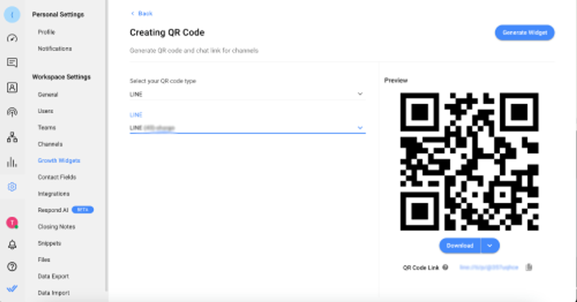 Select LINE as the QR code type > Select the connected LINE Channel that you want to create the QR code for.