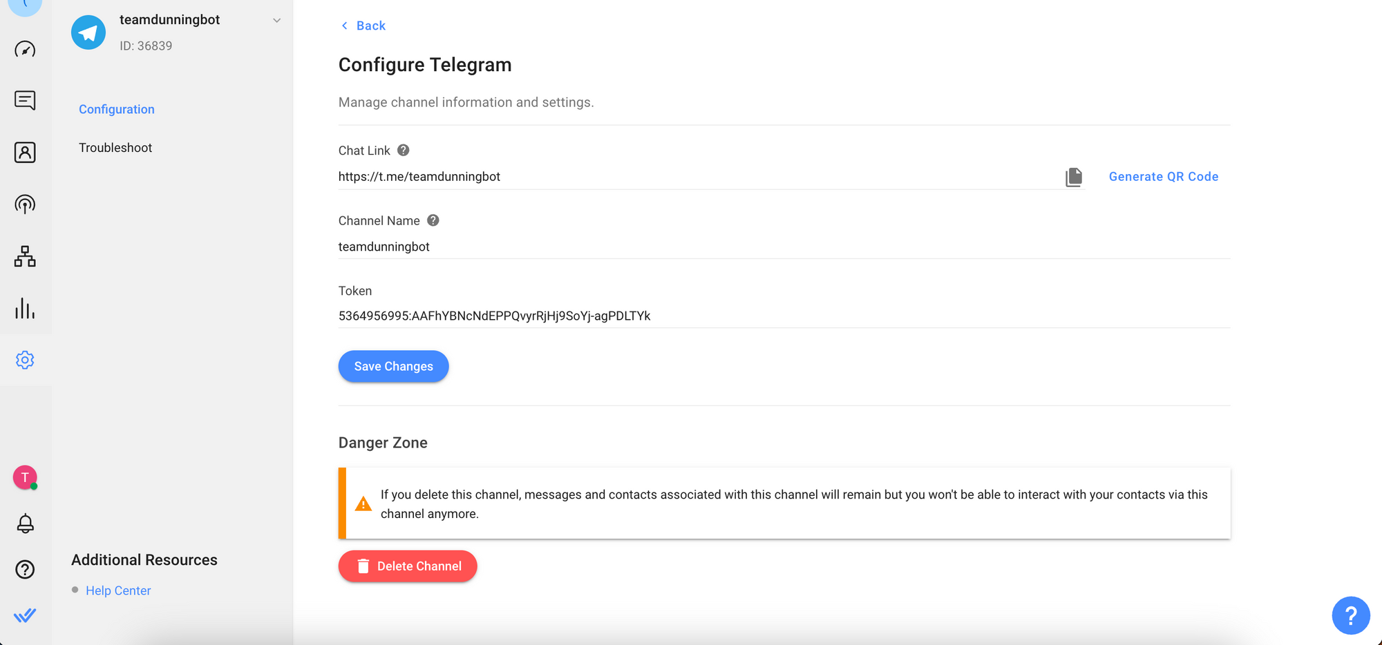 To connect a Telegram Channel, a Telegram Bot is required. You can learn how to create a Telegram Bot here.