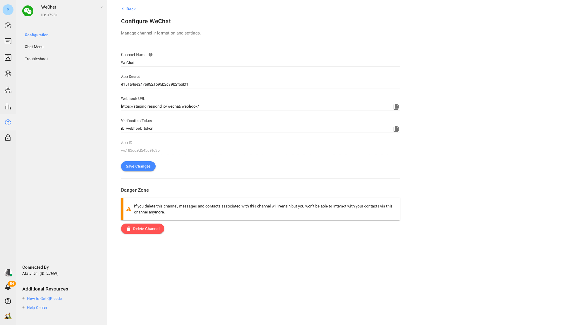 Step 4: Click Save Changes to update the WeChat Configuration page