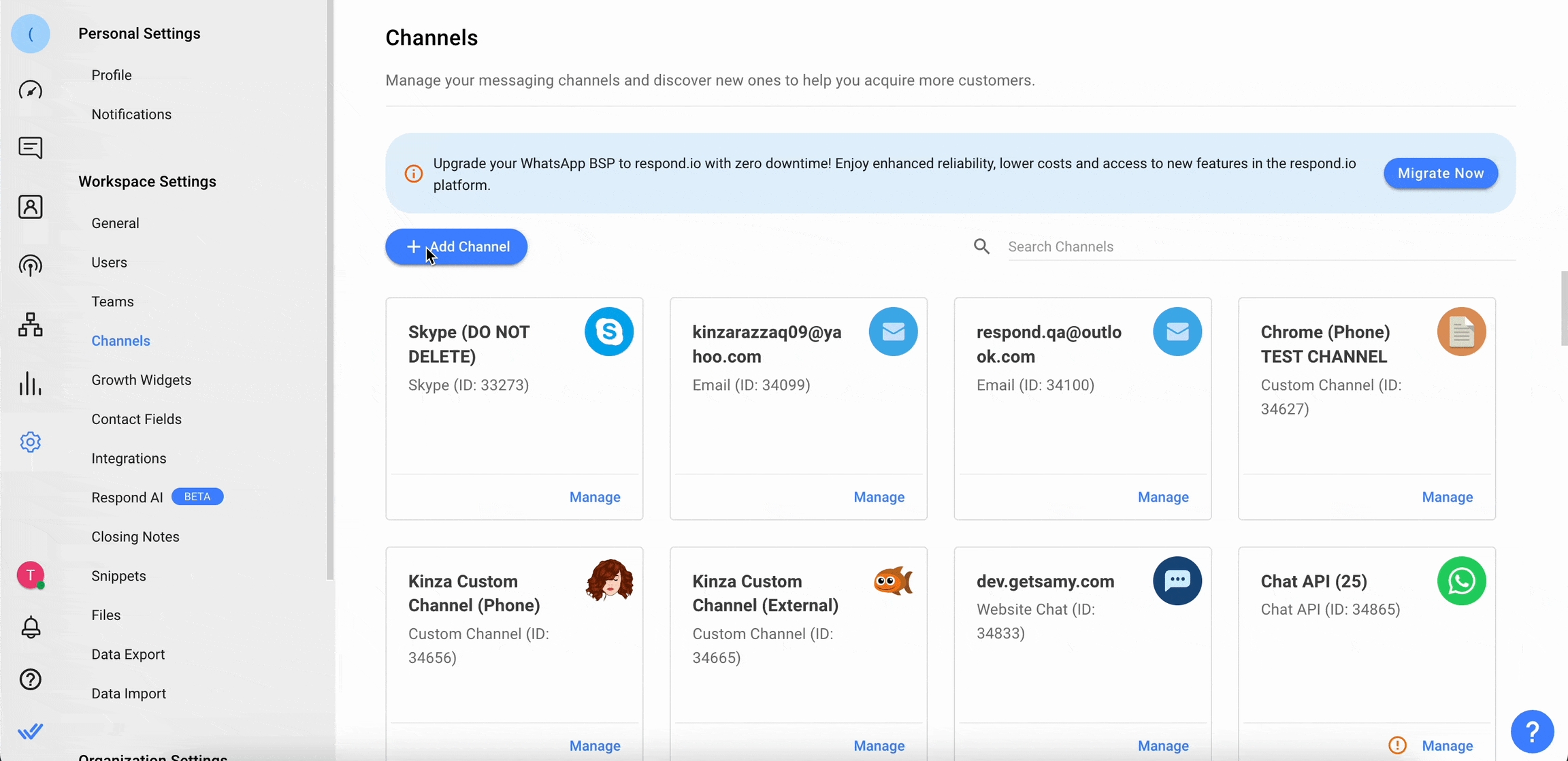 Step 1: Go to Settings > Channels
