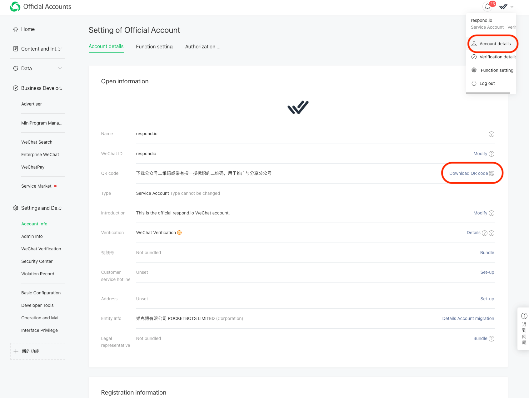 Go to your WeChat Official Account Manager > Account Details