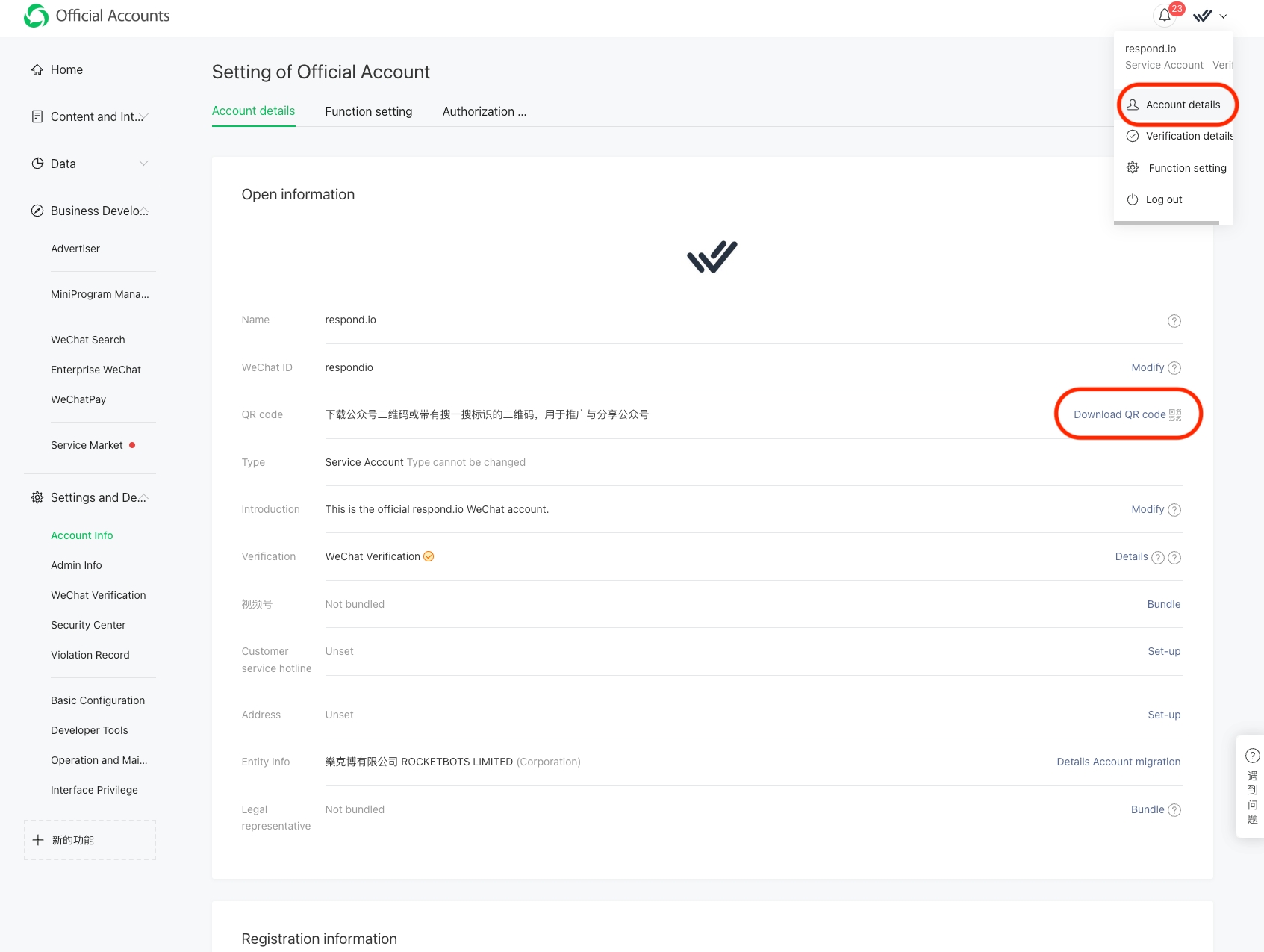 WeChat has a powerful search engine that allows users to search your official account in-app by the display name and keywords in your description. Users can easily follow you and start a conversation. Learn more about WeChat In-app search here.