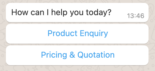 When the question or message has fewer or equals to 3 options, WhatsApp Quick Replies will be used to display the options.