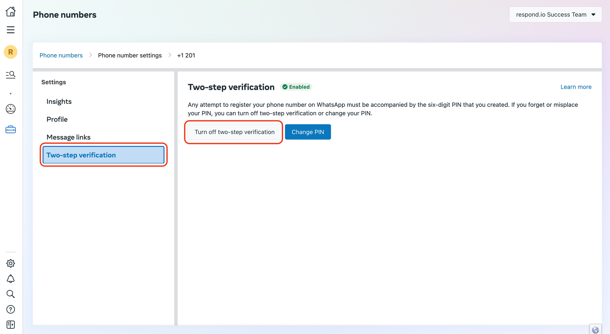 Turning off the two-step verification in your WhatsApp Manager is a required step before you can migrate your phone number to IS-Messenger WhatsApp Business API.