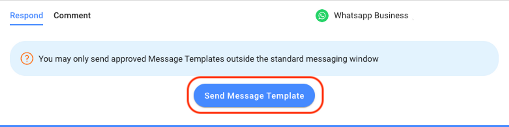 To send a Message Template after the customer service window has expired, click the Send Message Template button at the bottom of the Messages Module.