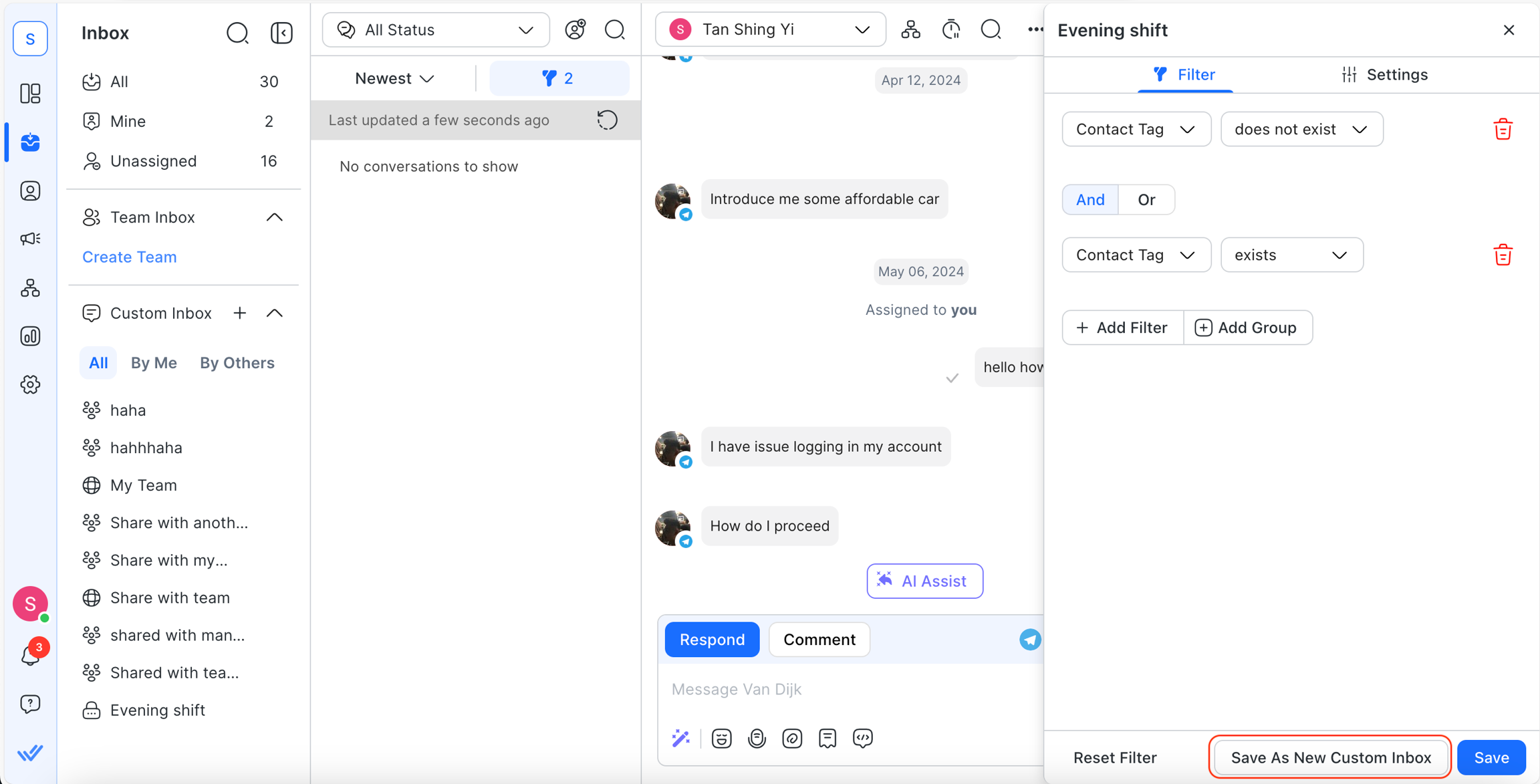 Step 3: Save the Custom Inbox by clicking Save at the bottom. You can also select “Save as new Custom Inbox” to save the filters as a new inbox.