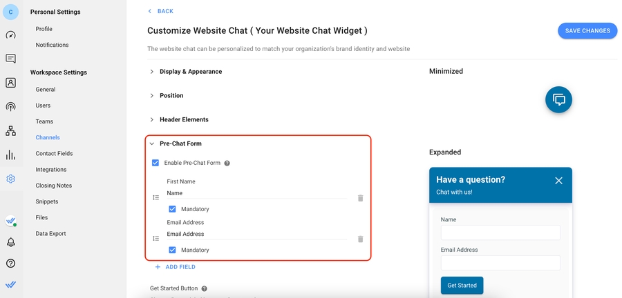 Here’s how to set up the Contact information you want to collect from the Pre-Chat Form.