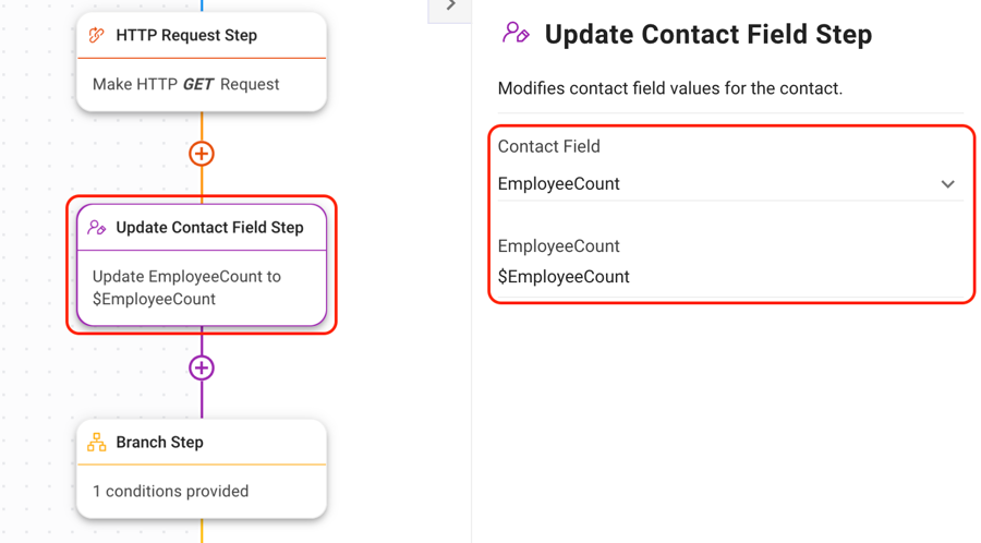 Tip: Learn more about the Update Contact Field Step here