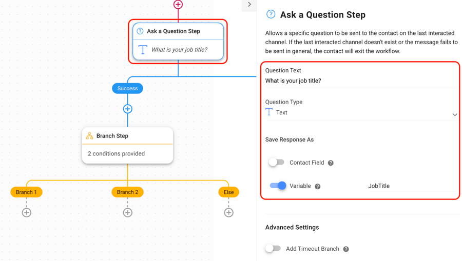 Tip: Learn more about the Ask a Question Step here.